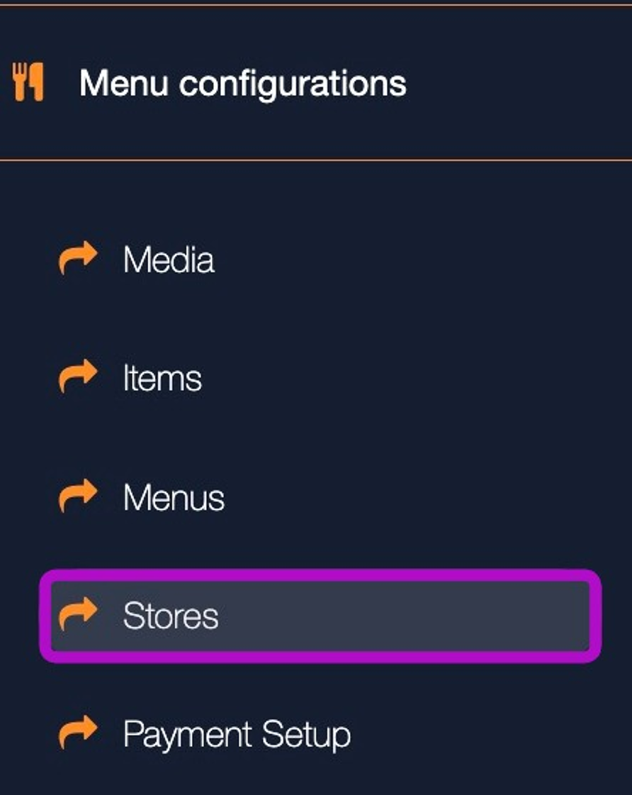 8. Navigate to "Stores" under "Menu configurations" in the sidebar