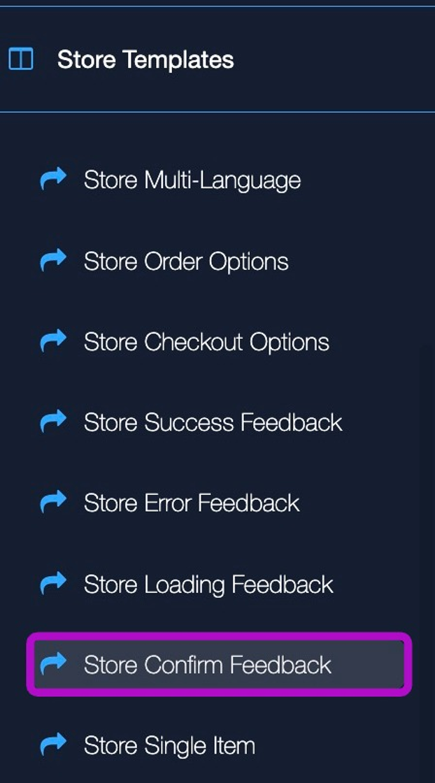 Back1. Navigate to "Store Confirm Feedback" under "Store Templates" in the sidebar