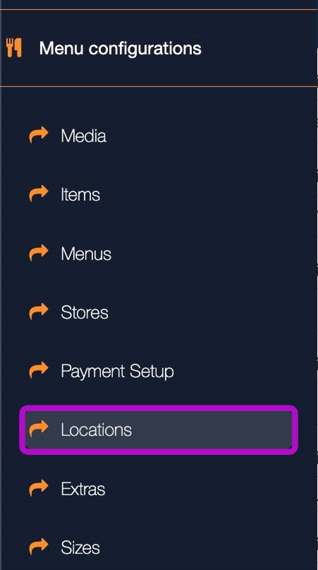 8. Navigate to "Locations" under "Menu configurations" in the sidebar.