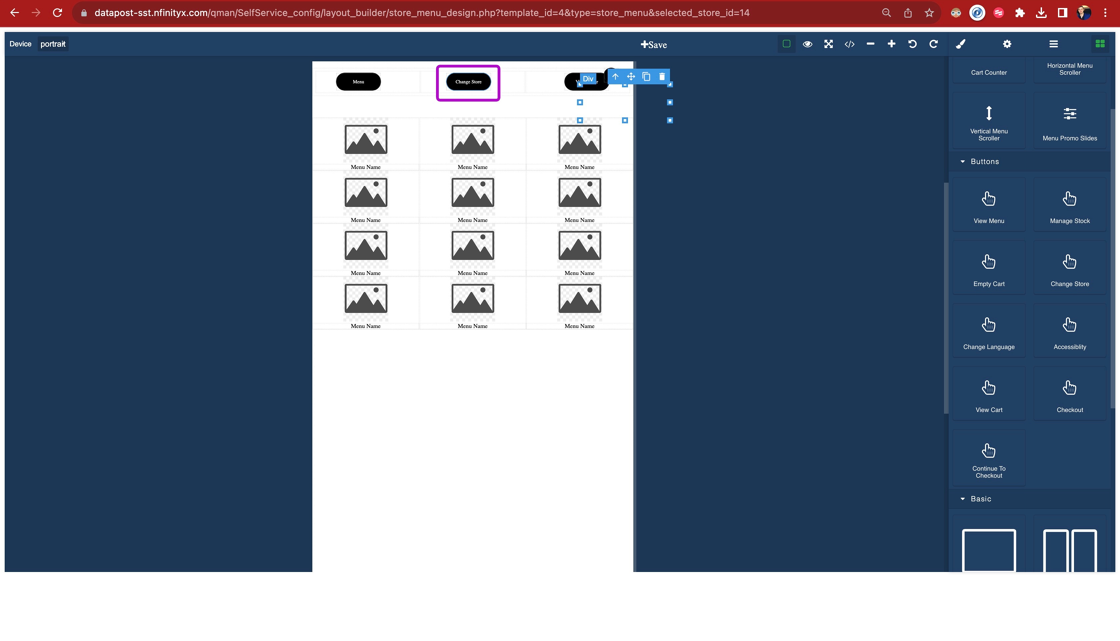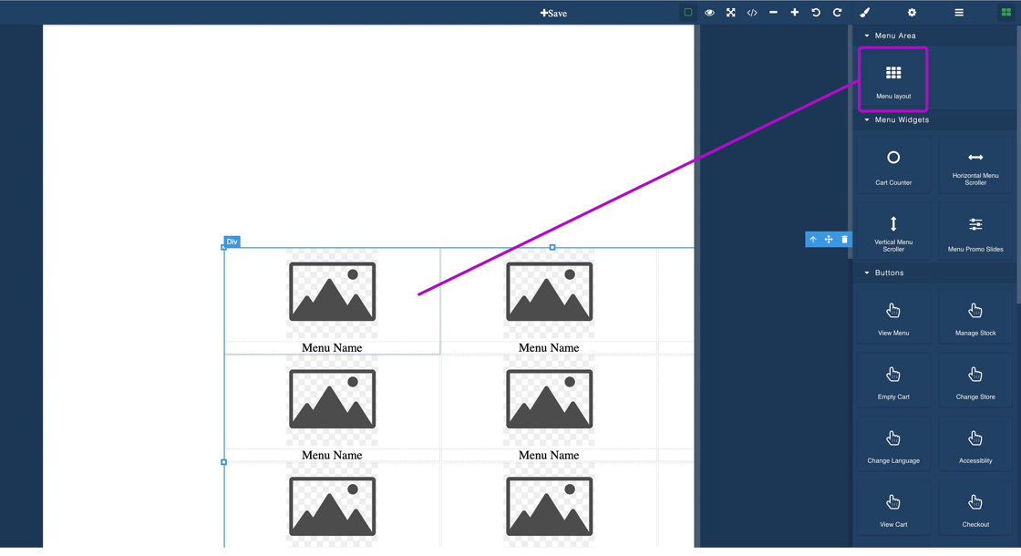 12. Click and drag one of the layouts from under "Menu Layouts" onto the blank canvas.