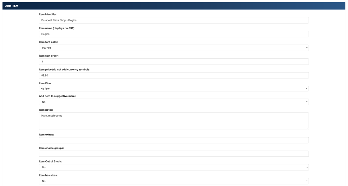- "Item name": This is the name that will be displayed on the SST kiosk.