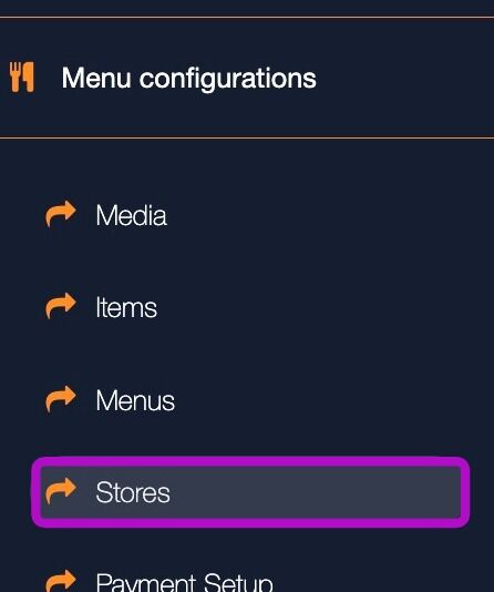 27. Navigate to "Stores" under "Menu configurations" in the sidebar