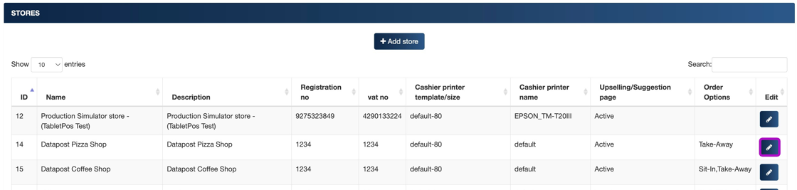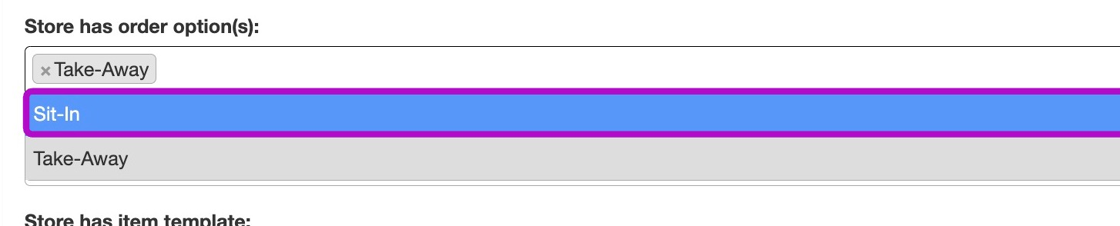 13. Select the Order Options Template created in the "Store has order options template" dropdown