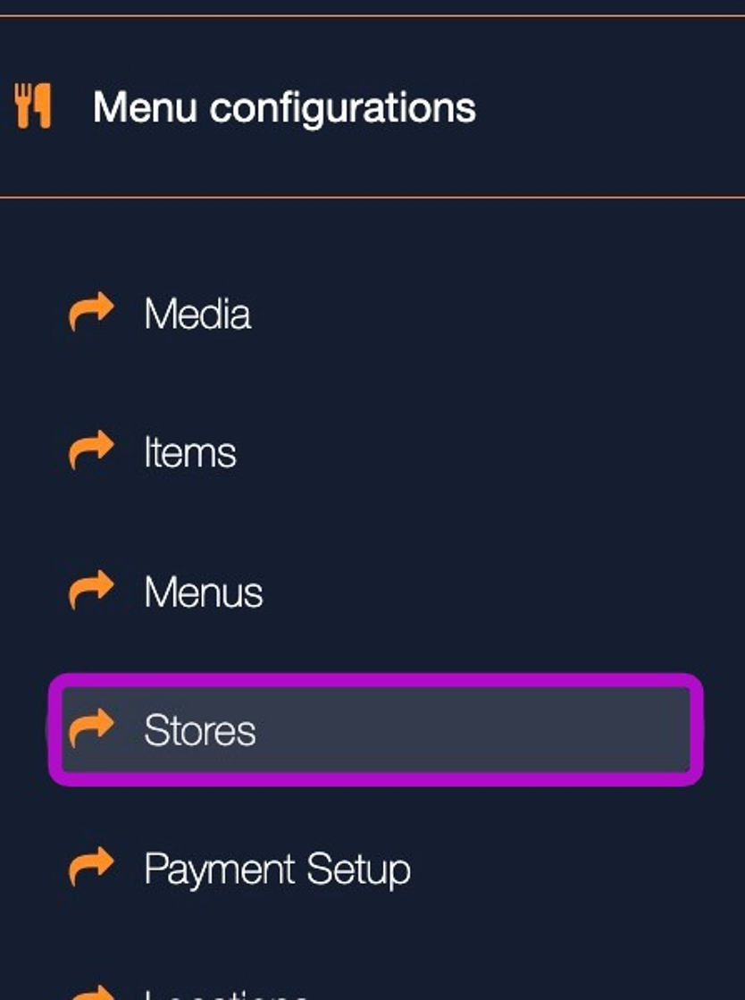 10. Navigate to "Stores" under "Menu configurations" in the sidebar