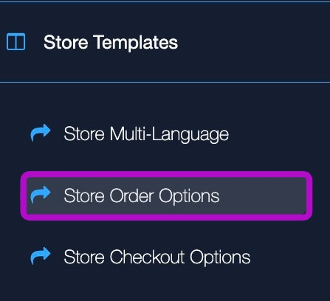 3. Navigate to "Store Order Options" under "Store Templates" in the sidebar