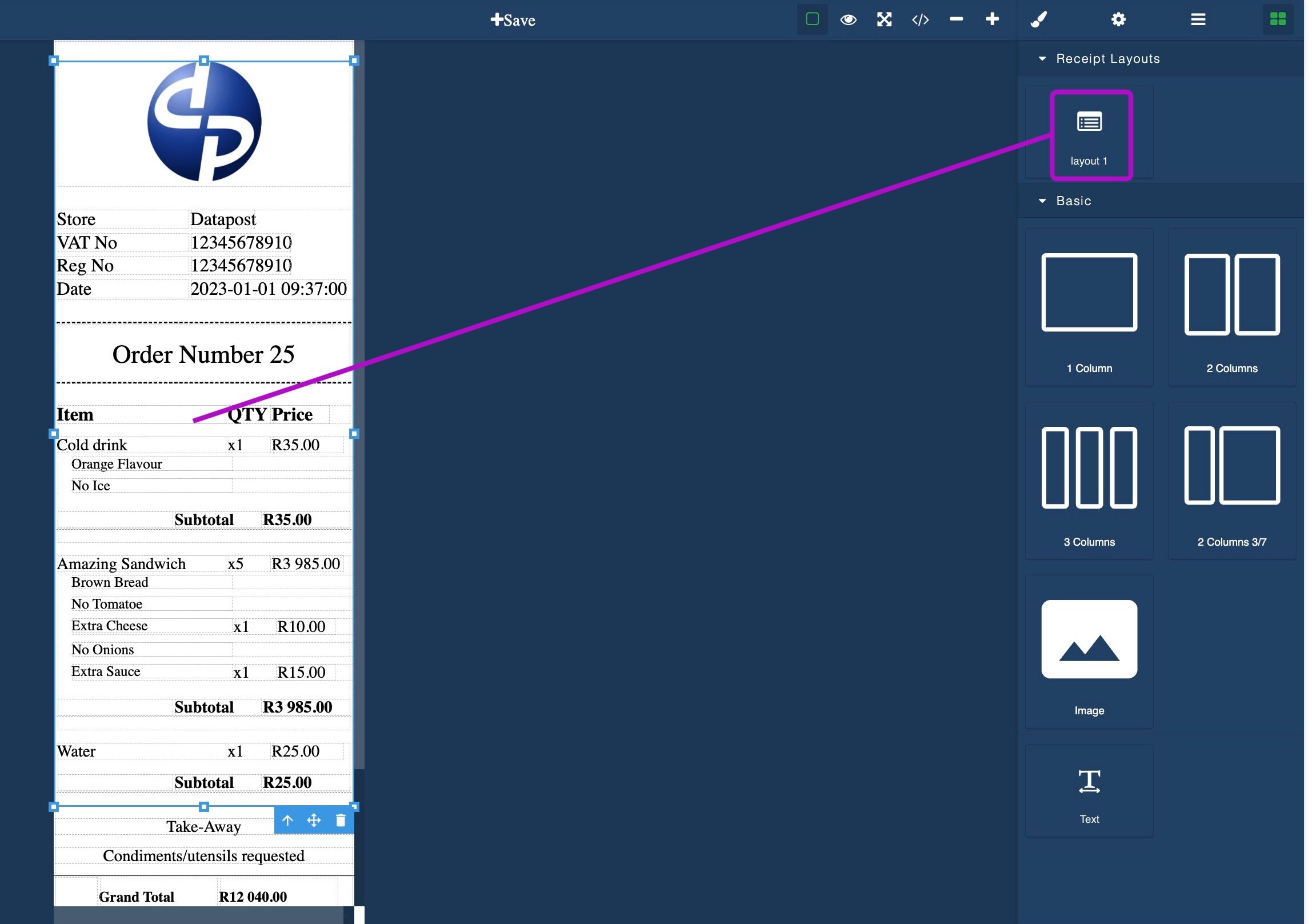 6. Click and drag a layout from "Receipt Layouts" onto the canvas