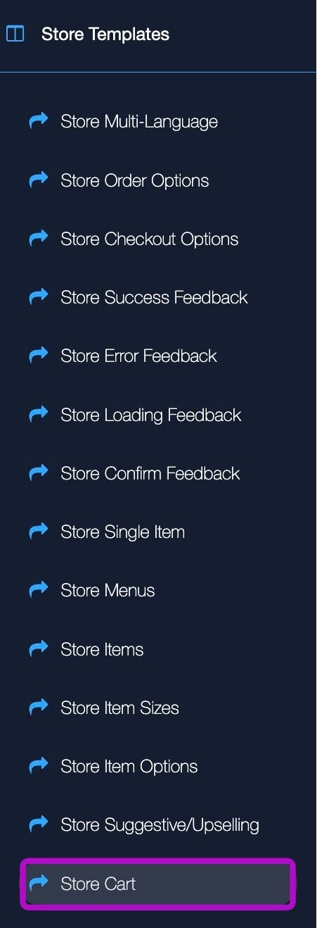Back1. Navigate to "Store Cart" under "Store Templates" in the sidebar