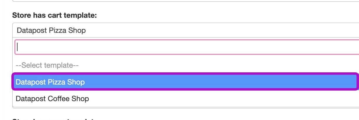 10. Select the Store Cart Template from the dropdown under "Store has cart template" option